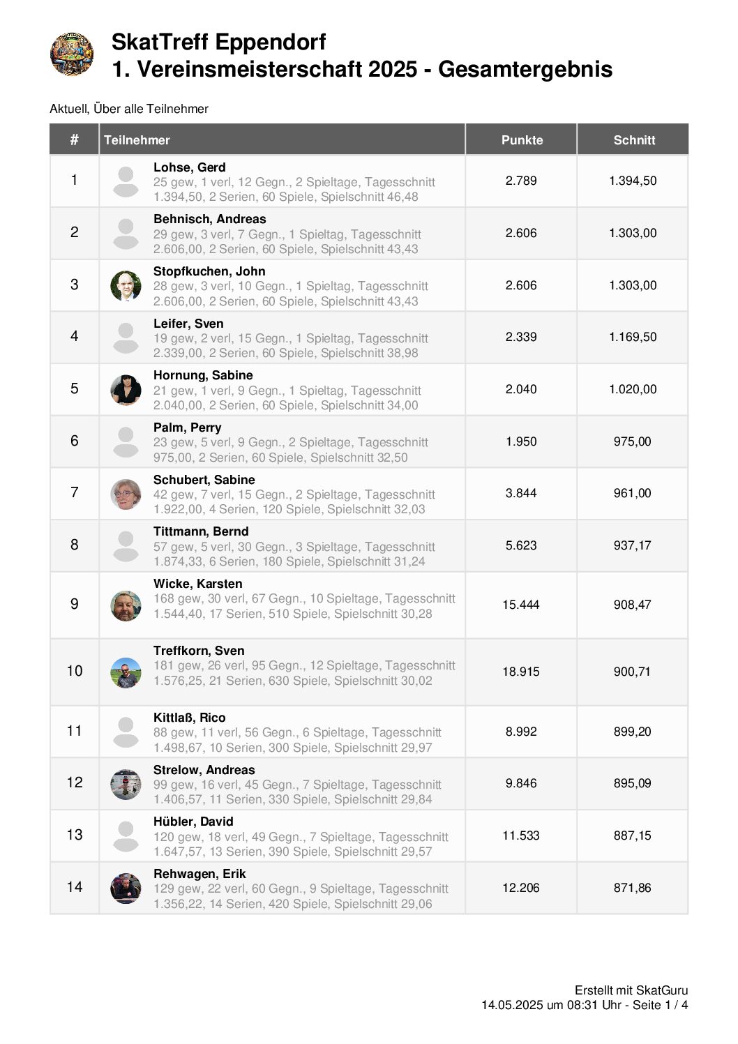 Gesamtübersicht alle bisherigen Teilnehmer