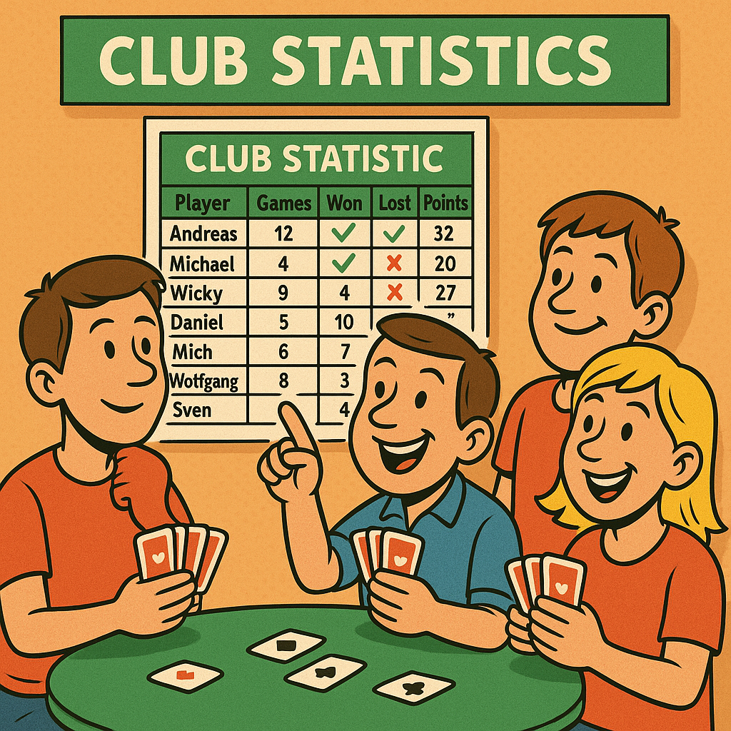 Spieler Serien Spiele Gesamtpunkte Punkteschnitt Gewonnen Verloren Spielquote (%) Verlustquote (%) Spielschnitt
