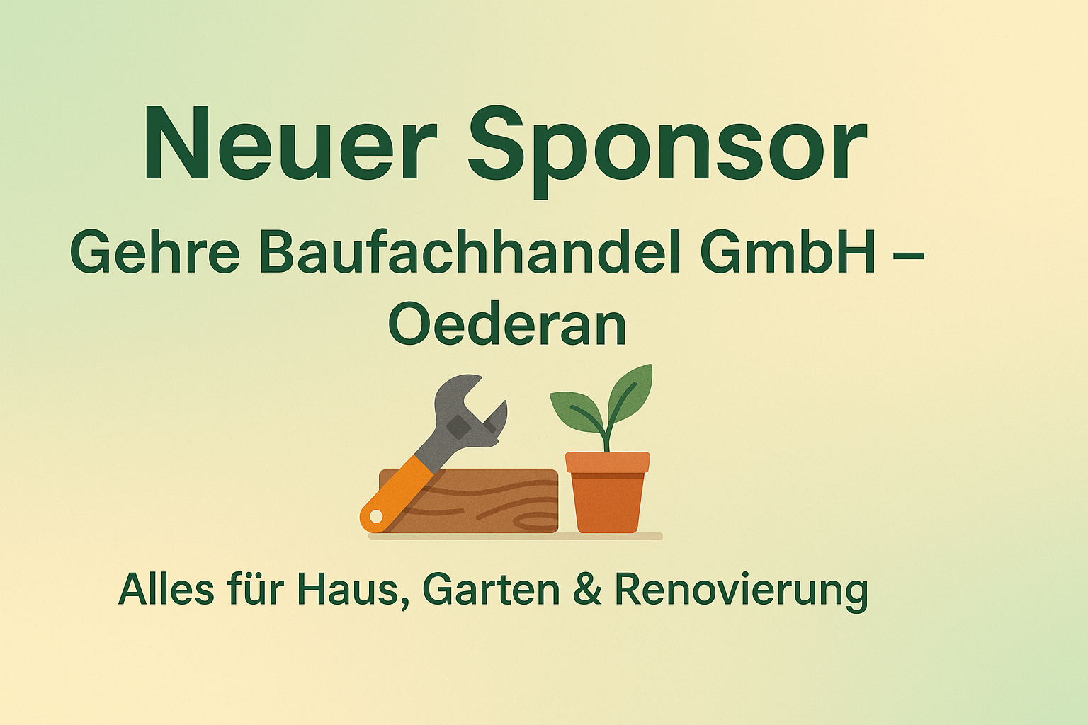 Neuer Sponsor: Gehre Baufachhandel GmbH in Oederan – sie bieten alles für Haus, Garten und Renovierung, mit großem Sortiment und kompetentem Service.
