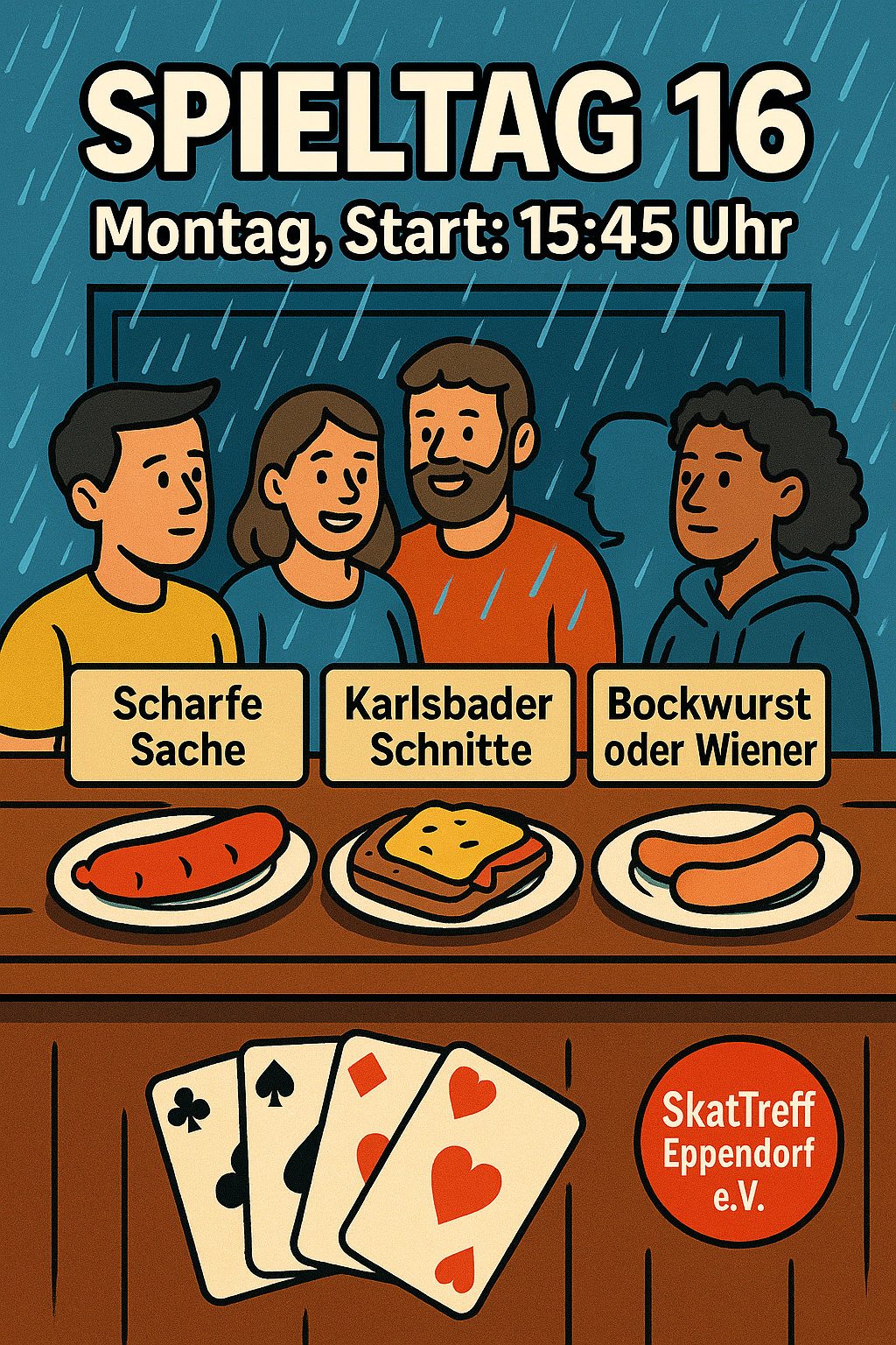 Montag regnet’s? Perfekt. Zeit für Skat, Gemeinschaft und eine heiße Partie! 😎