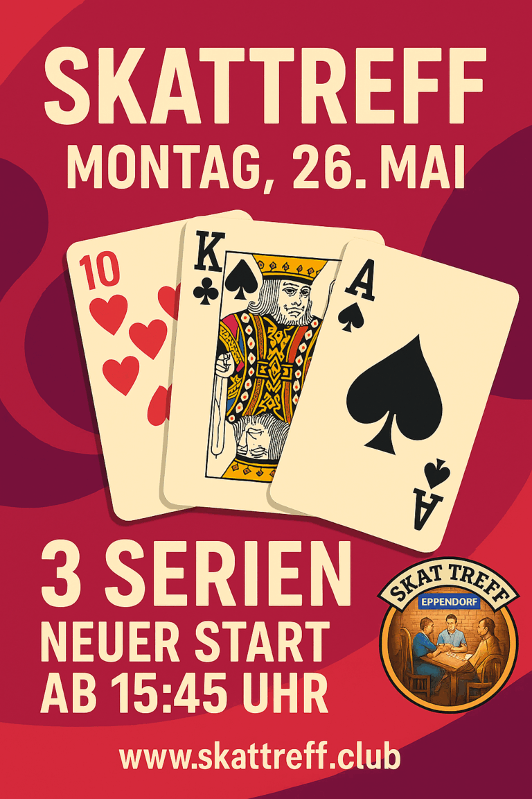 Achtung – Topnews vom SkatTreff Eppendorf e.V. Testlauf am kommenden Montag – 3 Serien zur Auswahl! Aufgrund zahlreicher Nachfragen haben wir eine neue Idee geboren: Viele von euch haben sich gewünscht, viel früher starten zu können. Andere finden das Ende…